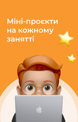 На кожному занятті — теорія, практика та проєкти, які допомагають бачити результат своєї роботи вже під час навчання.